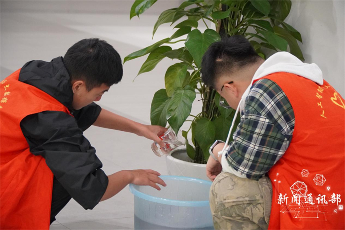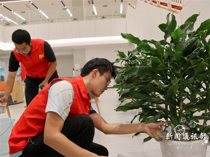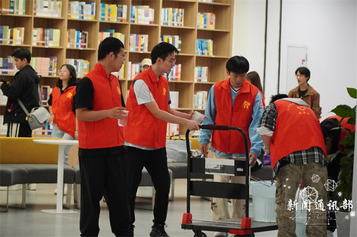 活动伊始,人工智能与大数据学院团总支学生会的志愿者们身着统一的志愿服务马甲,在明确分工后,以高度的责任心和饱满的热情迅速投入到“书海拾慧,新序学斋”图书整理活动中。其中一组志愿者跟随指导,协作将书签架放置至指定区域,随后,细致对书籍进行严谨地分类与归纳,确保每一本书都能按照既定顺序整齐地摆放在对应书架上。另外一组志愿者则用小拉车进行图书新绿植的更换以及运水浇灌图书馆内的绿植并清洁地板。尽管现场任务内容颇为繁重,但志愿者们仍认真对待,他们有条不紊、耐心细致地完成图书整理与馆内清洁工作。经过志愿者们的辛勤劳动,图书馆内的书籍井然有序,为读者提供极大的便利,使得寻找书籍变得一目了然,有效提升阅读体验。