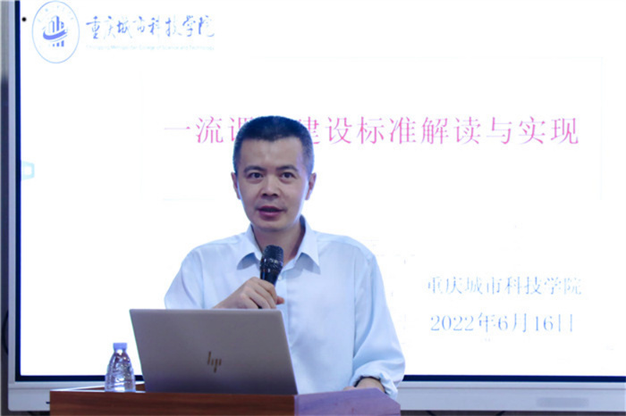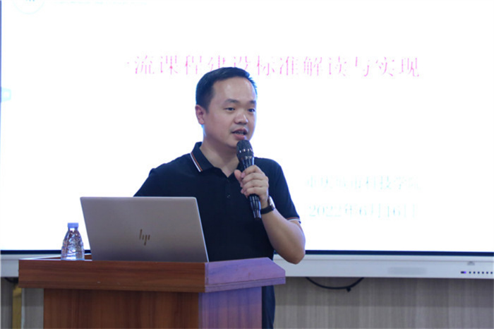 重庆高校在线开放课程平台运营副主任、昭信教育科技集团数字化教学服务中心副主任谭培亮就线上一流课程建设相关标准解读与实现进行了讲坛。