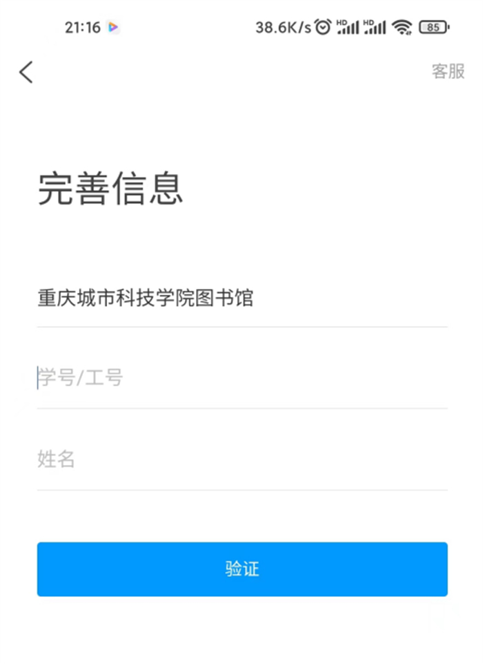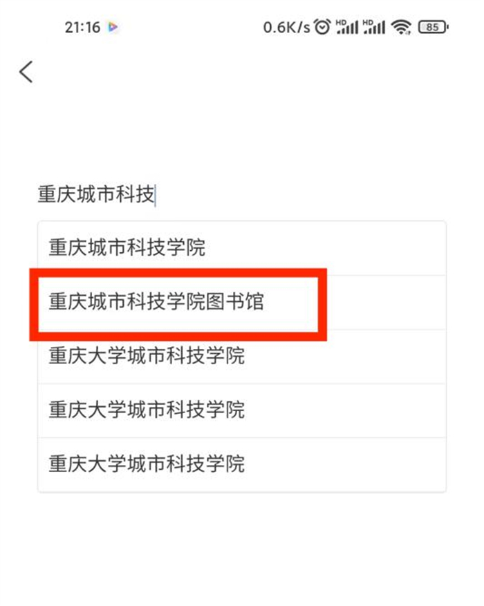 机构认证:输入单位名称,选择下拉框中出现的“重庆城市科技学院图书馆”