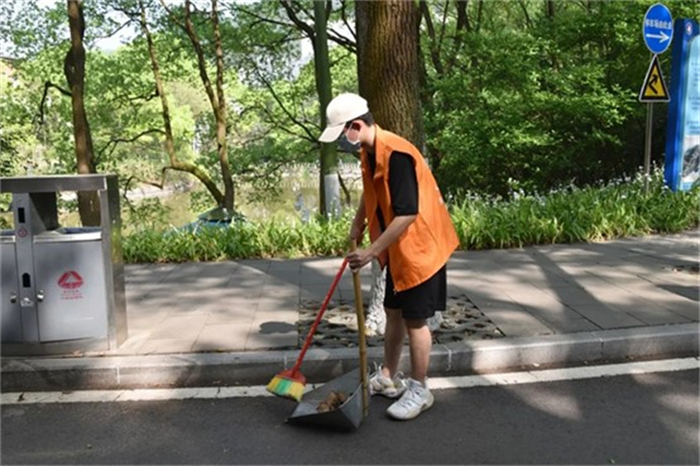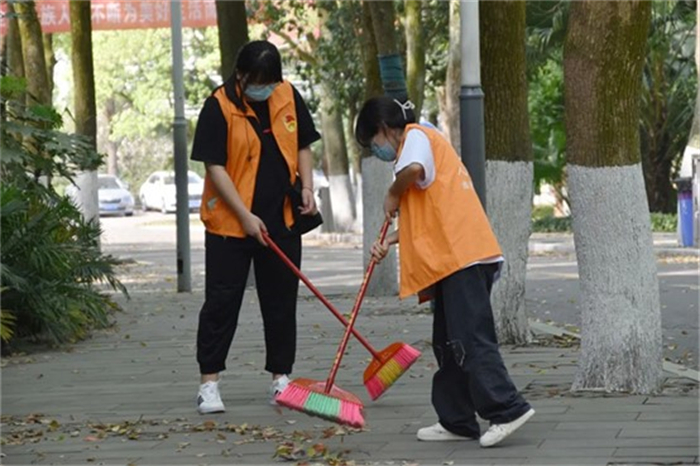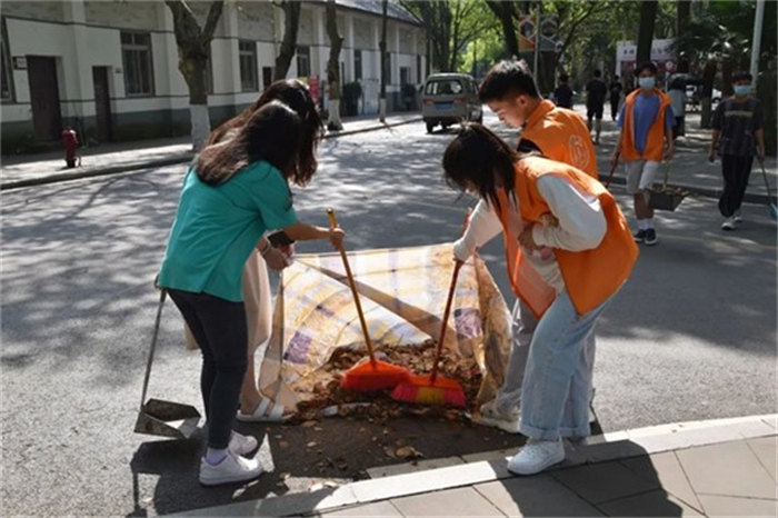 为提高清扫效率,志愿者们各司其职,分别进行清扫落叶和收集落叶的工作。期间,志愿者们一丝不苟、团结协作,对垃圾进行彻底清理,街道上焕然一新。他们用行动为同学们做实事,给同学们的校园出行提供便利的同时,也为清洁工人分担一份辛劳,在校园形成靓丽的橙色风景线。