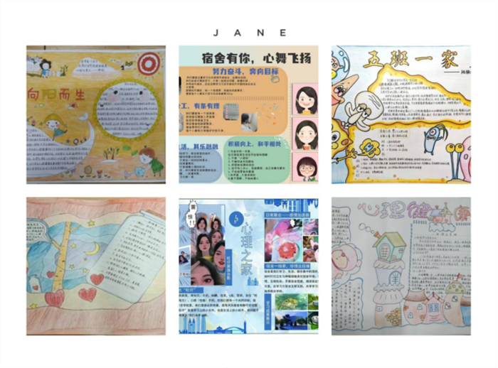 (2)三级心理之家建设成果:以“三有一约”手抄报的形式展示了学院各专业在学校、学院、班级、宿舍心理健康教育工作中的特色与成果,使各专业学生通过自助—互助—助人,展现心理成长的丰富成果与经验,帮助自己心灵成长。