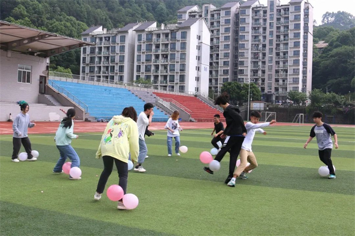 本次素质拓展活动分为音乐小曲库、踩气球、丢沙包三个比赛环节,并设置奖品,为每场比赛的优胜者颁奖,以示鼓励。比赛开始前,同学们蓄势待发,音乐一响起,他们便快速反应,积极抢答,竞猜歌名。随后是踩气球环节,同学们大显身手,展开精彩混战,参与者激情四溢,观众也热情高涨。踩气球游戏不仅可以锻炼同学的平衡能力、躲闪能力及良好的合作能力,更可以进一步激发个人潜能,展现运动天赋。丢沙包是传统的集体游戏,同学们转体、拋掷、躲避等动作干净利落,身手敏捷,场面精彩纷呈,以游戏的方式提升同学们的个人心理素质和团结协作能力。