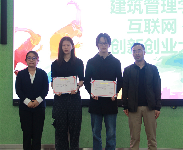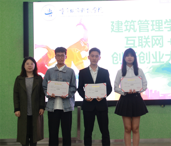 三等奖:“从心开始”、“小窝校园家政服务”、“常青山庄现代农业与文化一体化”项目团队,由建筑管理学院第三党支部书记魏丹老师分别为他们颁奖。