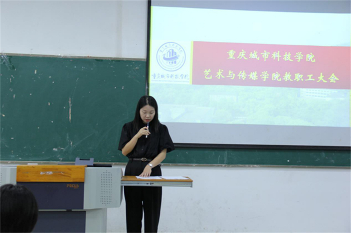 6月20日,重庆城市科技学院艺术与传媒学院全体教职工于二教109召开教职工大会。会议由院长蔡敏主持,党总支书记、副院长陈宣君,副院长王颖,党总支副书记袁丁出席会议,全院教职工参加。