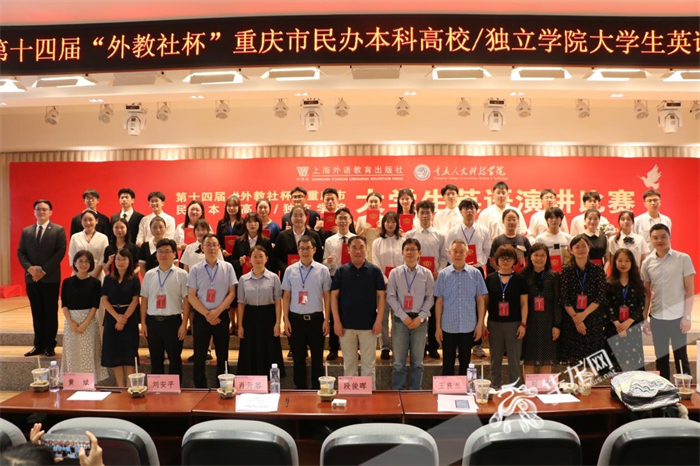 从2009年举办以来,“外教社杯”重庆市民办本科高校/独立学院大学生英语演讲已成功举办了十四届。14年来,该赛事逐渐发展壮大,已成为重庆市大学生英语演讲比赛的重要品牌,为八所高校搭建了一个“以赛促学,以赛促教”的平台,让学生们通过比赛提高自身的综合素质,思想会更具深度和广度,让教师们通过平台相互交流教学经验,取长补短,相互切磋,是各高校交流合作、增进友谊、相互学习、相互借鉴的重要平台。(刘琴 王稀锐/文图 传媒中心 李美蓉/编辑)