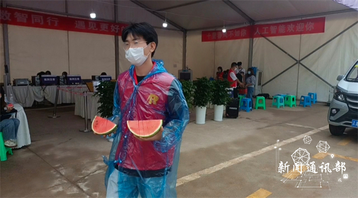 炎炎夏日送清凉,丝丝关怀润心田。正值夏季,高温酷暑。为缓解燥热天气,保证迎新工作正常秩序,传递人工智能学院人文关怀。在迎新期间,志愿者为受伤新生提供暖心帮助,搬运行李,送她回寝室,学院为志愿者准备清甜的西瓜解暑。不仅送去丝丝凉意,也给炎炎夏日带来一阵清风。把真正的关怀送进心坎。同时引导同学们劳逸结合,注意防暑。