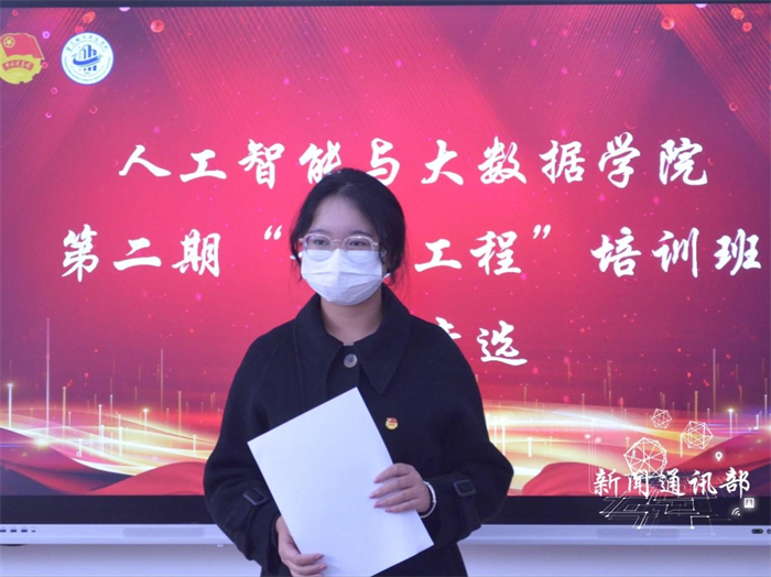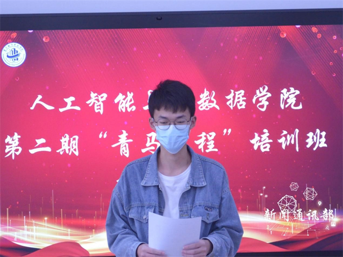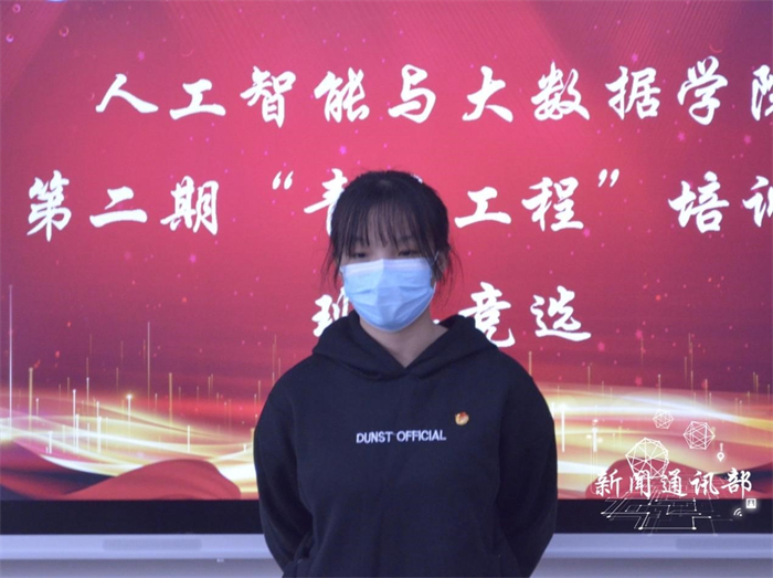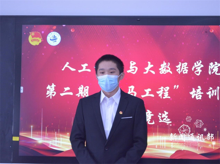 为坚持不懈地用社会主义核心价值体系教育青年,加强第二期青马工程培训班管理,完善组织架构。 11月15日12:30,人工智能与大数据学院于主教306开展第二期青马工程培训班班委竞选。参加本次竞选有14名学生,面试评委由人工智能与大数据学院团学指导老师唐静,书记处主席团成员以及骨干组成。