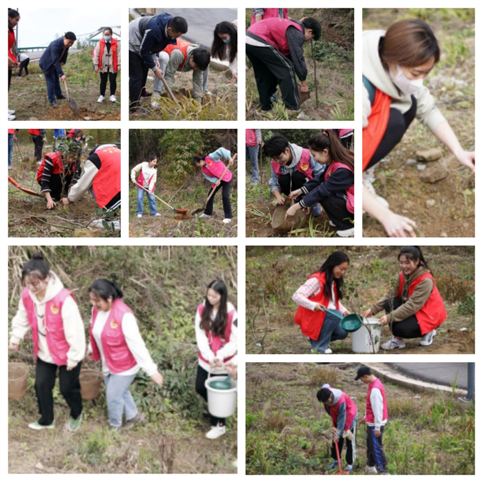 英雄花开英雄城,红衣志愿暖人心。志愿者们前往茶竹村开展“春暖三月学雷锋,共植茶竹·城科林”的义务植树教育实践活动,志愿者纷纷挥锹铲土、扶树填坑、浇水正苗等一系列绿化种植和爱绿护绿活动,有效利用了当地乡村的废地荒地,彰显了志愿者们在生态环境保护、文明实践中的志愿力量。在实践过程中,志愿者们充分发扬不怕脏、不怕累的劳动观念与认真肯干的劳动意识,争做生态文化的传播者与绿色家园的建设者。