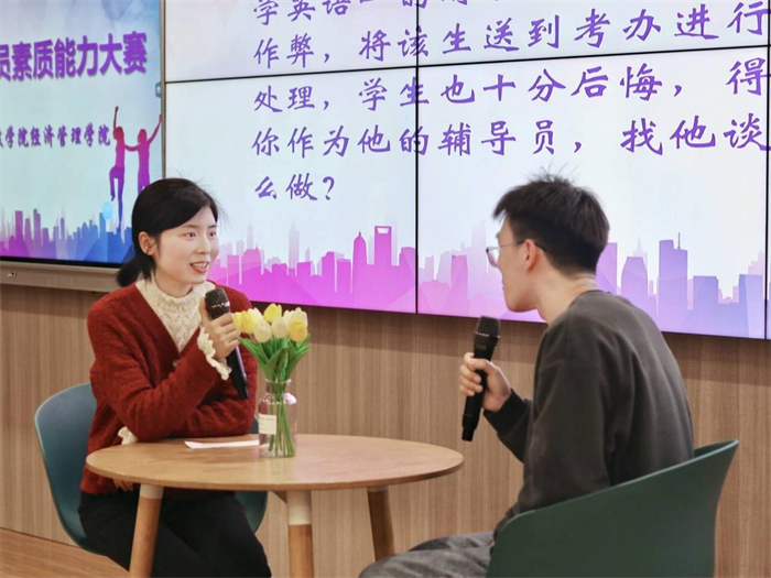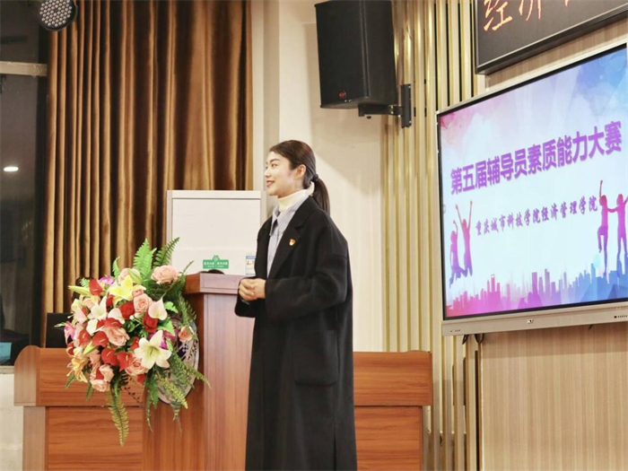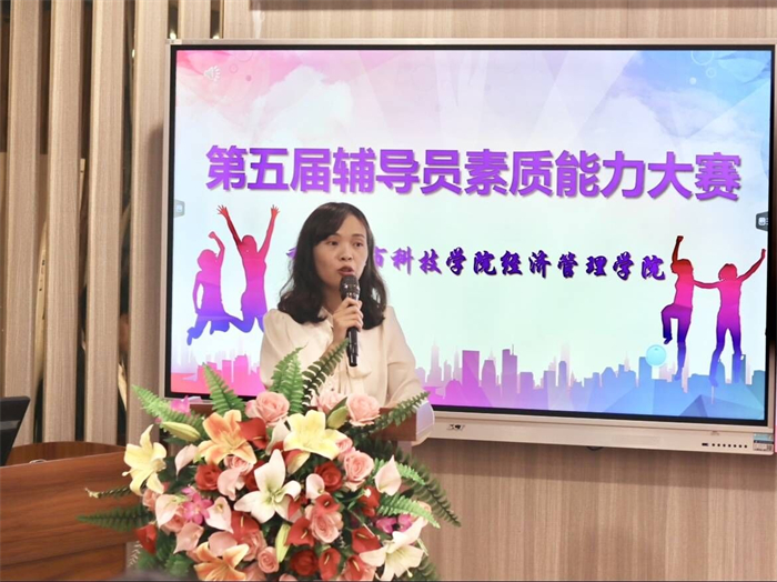 为加强辅导员队伍建设,提升其工作能力和理论素养,进一步激发辅导员的工作热情,推进学院学生管理服务和思想政治教育工作有效开展。3月9日晚上,经济管理学院于金融仿真中心举办第五届辅导员素质能力大赛。参与本次赛事的领导有重庆城市科技学院学生处处长马健,经济管理学院党总支书记、副院长冯鑫,人文学院老师敖莹莹,学生处老师曾卓。