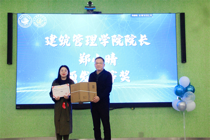 建筑管理学院院长郑小晴为辅导员魏丹颁发一等奖