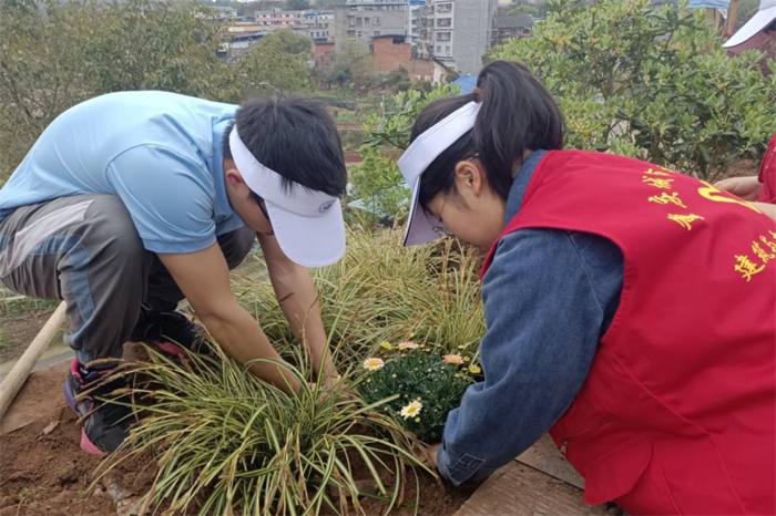 筑生态文明,绘山水宏图。当日下午,建筑与土木工程学院团总支书记胡欣、风景园林系副主任王晓晓老师组织并带领40名志愿者来到金鼎村。志愿者们以习近平生态文明思想为根本遵循和行动指南,在当地书记的协助下展开改造村景花坛的行动。活动中,王晓晓老师耐心为志愿者和村民们解答花草的培育方式以及养护注意事项,迎得在场志愿者们和当地书记的掌声。