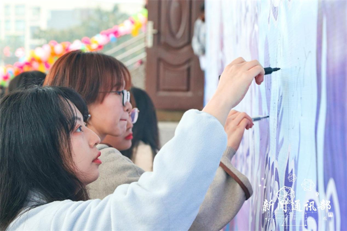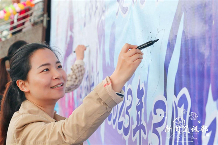 开幕仪式接近尾声,开幕式领导与老师们移步主席台,一同在海报上签名、寄语并合影留念。