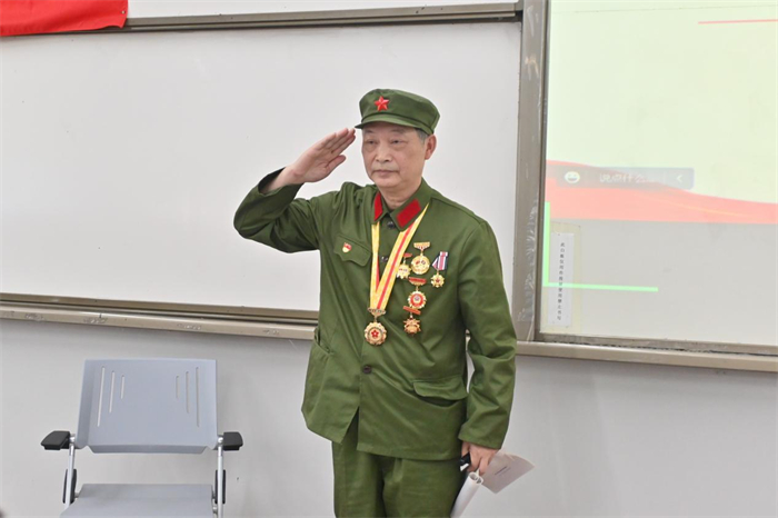 随后,刘树银老同志为学院师生党员、入党积极分子开启党课培训第一讲。刘树银老同志语调铿锵、热血澎湃地向大家讲述那一段段在枪林弹雨、浴血奋战中刻骨铭心的往事。他用质朴的语言与真挚的情感一次次触动着大家的心弦,感染了在场的每一个人,现场掌声雷动。