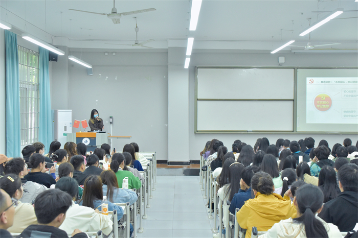 课上,毛老师引用党的十九大报告“不忘初心,方得始终”指出,作为入党积极分子,要不断学习党章党规、党史、新中国史,学习党的指导思想,学习原著并悟原理,不断加强自己对党的认识,以党的意志为意志,以党的使命为使命,坚守入党初心,坚持终身学习,为党献策献力;作为青年一辈,努力成为党在青年群体中的“传声筒”,在不断增强“四个意识”、坚定“四个自信”、做到“两个维护”的同时,将其传播给更为广泛的群体;作为青年学子,要能在自己专业领域深入,在不断汲取各类理论知识的同时,用理论武装思想,认真贯彻落实习近平总书记关于教育的重要论述,从红色经典、党章党籍中汲取党的重要知识和党员优秀精神。