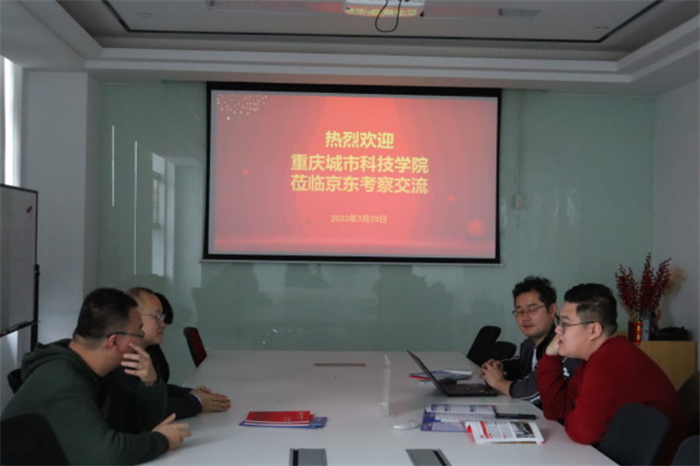 冯鑫从学校的办学特点、师资力量、教育教学质量、就业情况等出发,与企业人资行政部校招负责人陈小雨、人事经理张引弓就人才招聘、校企合作模式等展开深入讨论。冯鑫指出,京东物流作为我校校企合作单位,在推动学校毕业生就业和人才培养方面发挥了重要作用。希望未来双方能在实践基地搭建、合作维度等进行进一步深化。