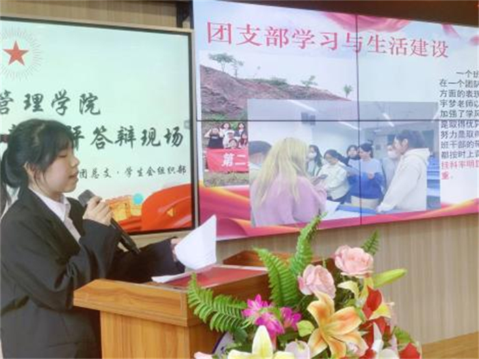 此次答辩会由各团支部负责人结合PPT进行汇报,共有18个团支部参与,各团支书围绕团支部的基本情况、特色活动、学风建设以及实践体验等多个方面进行总结,各团支部答辩内容丰富,充分展现了团支部的优势,为其他团支部提供了学习、借鉴的内容。随即,由评委进行提问与点评,各团支部代表结合团支部实际团务工作情况进行由点及面进行回答。