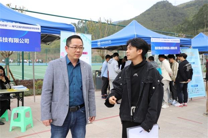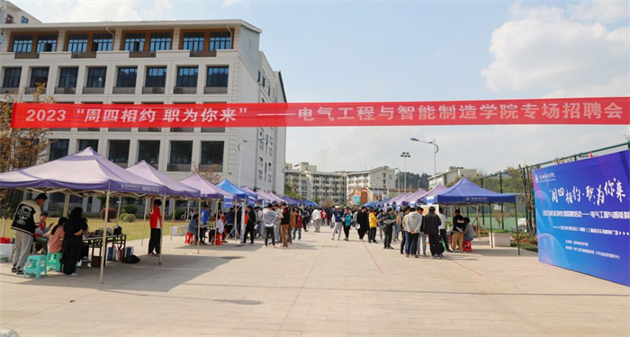 为深入学习贯彻党的二十大精神,落实党中央、国务院“稳就业”、“保就业”决策部署,拓宽毕业生就业渠道,为企业与毕业生搭建交流平台,3月30日下午,电气工程与智能制造学院携手学校大学生就业指导服务中心在三期综合实验楼广场举办“周四相约 职为你来”专场招聘会, 璧山区、武隆区等30家对口企业参加。电气工程与智能制造学院党总支副书记李晓飞,毕业生辅导员到现场对毕业生进行就业指导。