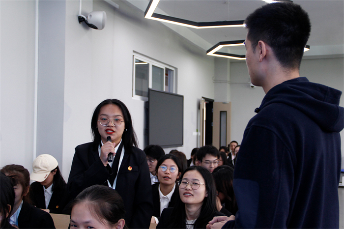其次,杨谨豪学长分享自身递交的重庆市级三好学生材料,并与团学成员互动,让大家讲述在部门难忘的工作经历和加入部门的收获,大家踊跃举手,积极互动。