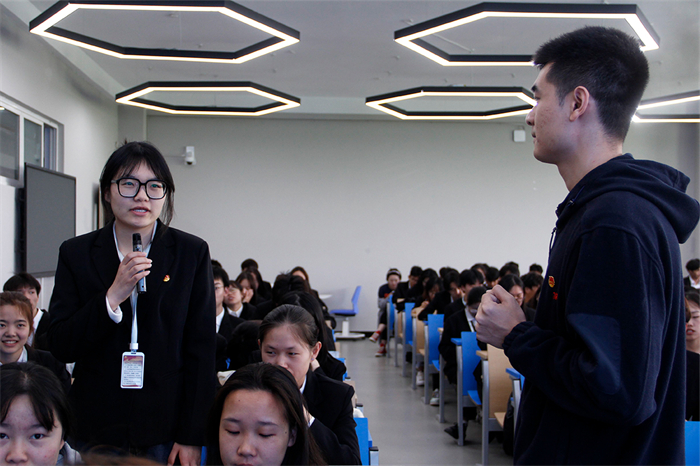 首先,杨谨豪学长根据自身经历,告诉大家在学习、工作以及生活层面要保持天秤上的动态平衡,妥善协调三者之间的关系,并从自身工作经历的角度出发对在场的同学们提出相关建议,鼓励同学们尽早制定学习或就业目标并为之奋斗。大学的生活是多姿多彩的,走出寝室舒适圈,多多参加课外活动,为大学生活增添一抹亮色。