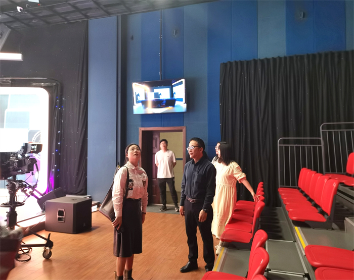 会后,艺术与传媒学院中国语言文化教研室一行在文传学院教学办主任,兼传媒实验室主任钟聿新老师的带领下,一同参观了文化与传媒学院演播厅、新媒体综合运营平台。钟聿新老师的讲解热情而细致,使教研室所有老师对文传学院新闻传媒专业的发展与建设大为赞叹。大家也对新媒体综合运营平台的最新技术发展也增加了更大的兴趣。