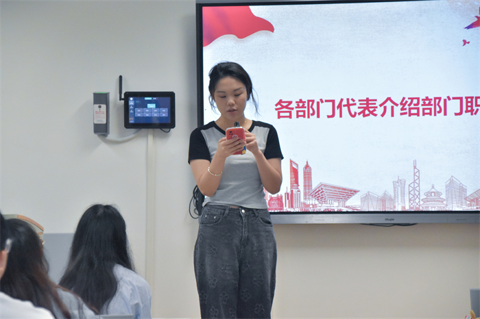 会议第二项议程,各个部门负责人介绍各自部门职能,四个部门分工明确,井然有序,新干事对各部门工作内容有了更加清晰的了解。