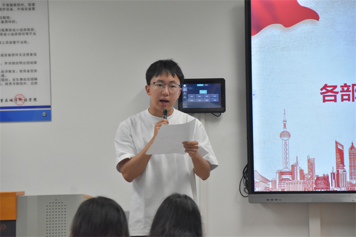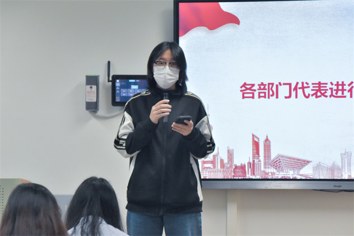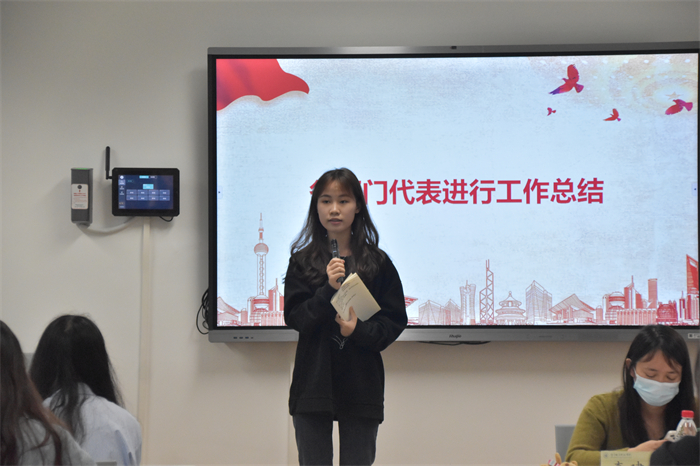 大会进行第四项,由各个部门代表进行工作总结,对本学期开展的主要工作进行逐一汇报,条理清晰。