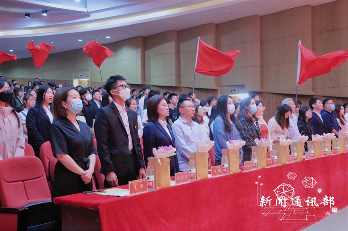 奏时代之音,唱青春之歌。澎湃的舞姿,有力的脚步,散发出青春的气息,青年学子们彰显生命的色彩,激发青春的活力,奏响时代之音,精彩绝伦的开场舞赢得在场所有人的阵阵掌声。挥舞的旗帜是理想的风帆,乘风远去缔造辉煌的未来,悠扬的旋律徐徐响起,全体在场师生齐唱团歌,以歌声表达对五四精神的敬意,拉开五四暨运动会表彰大会的精彩序幕。