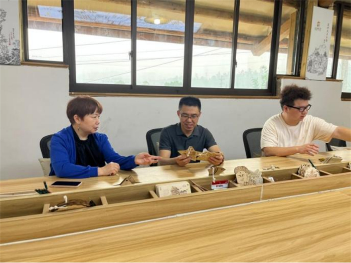 企业相关负责人廖凌波总经理对金扁担供销合作社以及复兴线描画基地做了基本情况介绍,并表示愿意和艺术与传媒学院的视觉传达设计、摄影、书法学、播音与主持等相关专业等达成合作事宜,提供实习岗位和应届生就业岗位。交流中,廖凌波表达了与学院在共同助力乡村振兴工作上,依托高校智力资源,深度开发乡村旅游及特色农产品方面开展深度合作的迫切希望,希望能长期与艺术与传媒学院开展深度合作。