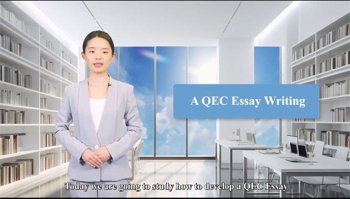 在团队微课视频展示环节,每个团队的视频内容都是精心制作,风格各异。首先进行展示的是第一组李逸雪老师的团队,李老师团队的微课聚焦于写作,主题为A QEC Essay Writing,该课程结合了当前课程思政的元素,以hero(心中的英雄)为例,系统性地讲解了QEC写作中的五要素,详细地介绍了QEC作文中开头、正文、结尾部分的结构。整个课程内容既专业又富有启发性。
