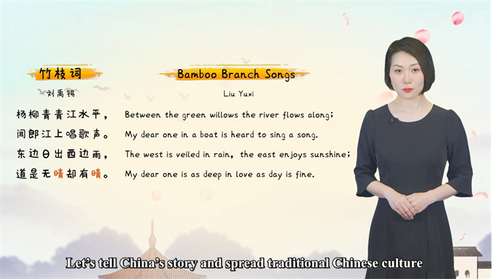 第六组是宋娟老师团队的 Translation of Chinese-culture Loaded Words,视频中由“青团”作为导入,由浅入深地对中国文化负载词相关定义以及音译法、音译加注法进行讲解。其例子十分丰富,最后进行了主题的升华,即中国文化负载词背后所蕴含的是中国文化的传播和发扬。