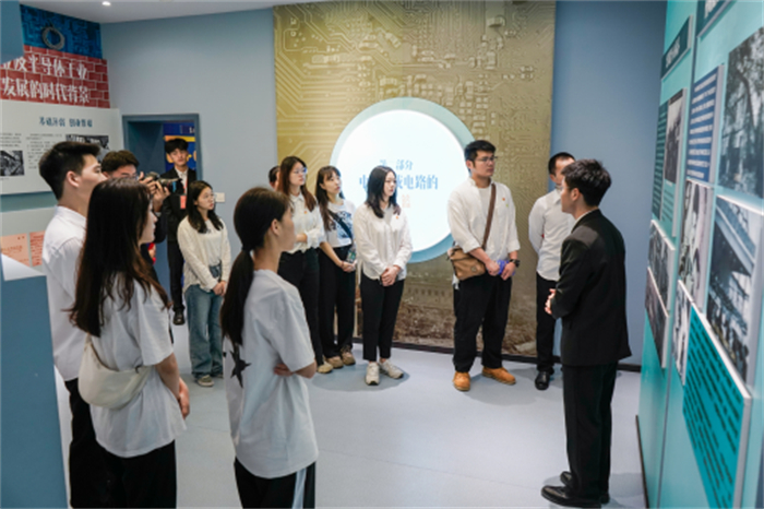 上午9:00,发展对象们跟随讲解员的脚步进入集成电路校史馆。馆内以中国集成电路创业发展史为主线,分别由序厅、主题展馆、尾厅和二十四所员工姓名墙组成,运用文字、图片、视频、新媒体融合等多种形式结合,真实、生动地再现了中国集成电路在不同历史时期的使命担当、艰苦奋斗的创业发展历程。