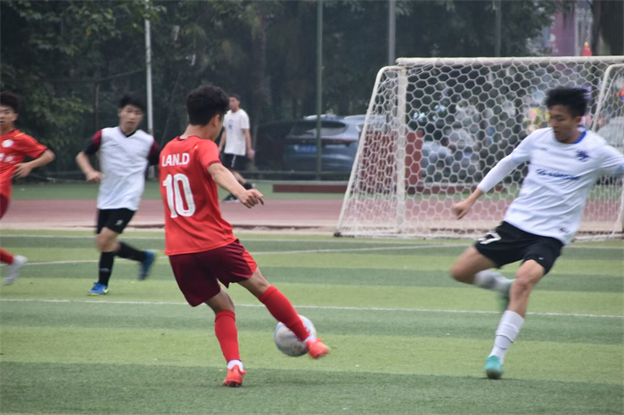 比赛正式拉开序幕,现场火热比拼的气氛让人心潮澎湃,绿茵场上他们热情似火,神采飞扬。传球、运球、破防、射门,你追我赶,互不相让,上演了一个个精彩绝伦的攻防战。盛夏的余热燃起脚底与赛道间的星火,声声呐喊声激励着疲惫的冲锋。一道道优美的弧度,划过绿茵,精彩就铸在人文健将的脚下,默契的配合,天衣无缝;精妙的射门,吸引眼球。双方队员秉着友谊第一,比赛第二的运动精神,在绿茵上奔跑,挥洒汗水。以精湛的脚法、完美地盘带、巧妙过人的技术为同学们呈现出一场精彩的足球赛。