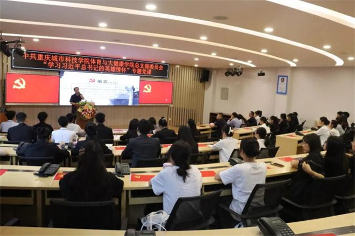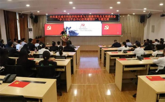 “天地英雄气,千秋尚凛然。”一个有希望的民族不能没有英雄,一个有前途的国家不能没有先锋。为引导广大师生党员和入党积极分子们提升党性,加深党的认识,将思想和行动统一到党的二十大精神和校党委的决策部署上来,以昂扬的斗志,为青春而奋斗,把握新时代爱国统一战线的历史地位和重要使命,做到以学铸魂、以学增智、以学正风、以学促干。6月15日下午,重庆城市科技学院党委副书记、副校长贾瑞同志围绕“习近平总书记的英雄情怀”为体育与大健康学院的党员及入党积极分子代表们开展一堂非常生动、精彩的专题党课,本次党课由体育与大健康学院党总支副书记李之琦主持,学院师生党员代表、发展对象和入党积极分子代表等共50余人参加专题党课学习。