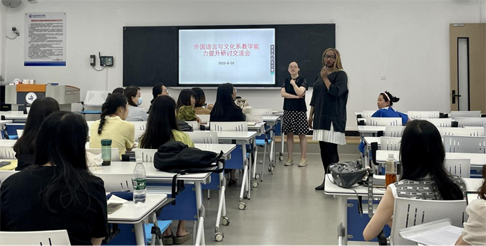教学质量是学校的生命线,为进一步提高教师教学能力、优化课程建设、切实提升教学质量。6月28日上午,人文学院外国语言与文化系在主教201开展了“教学能力提升研讨交流会”。本次会议由系主任曾右美老师主持,全系英语教师共同参与,旨在介绍英语专业的教学特色,探讨教学模式,总结教学经验,以便各位教师在今后的教学中,能够有的放矢,不断提高教学质量。