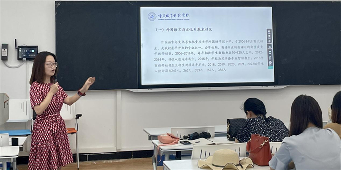 系副主任李晓娜老师着重向新老教师介绍了外国语言与文化系的特色亮点,让老师们对本系的办学背景、开设课程、人才培养计划以及课程专业特色等内容都有了更清晰的了解。