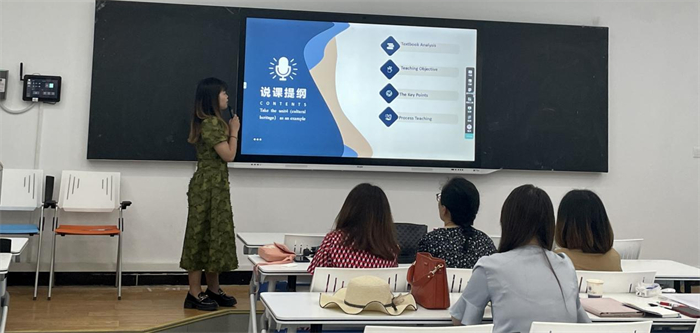 会议进行到磨课环节——由部分新进教师对本学期所开设的相关课程进行说课。参与本次磨课的五位新老师:蔡永玲老师、曾艺老师、胡枥文老师、徐杨老师和李仪老师分别对英语视听说课程、综合英语课程、理解当代中国读写课程、英语语法语法和日语课程进行了精彩的说课,详尽地展示了课程教材、教学目标、教学重点和教学过程。此次磨课,新老教师们一起交流研讨,学习了具体实用的教学方法和与学生交流的技巧,青年教师纷纷表示获益匪浅。