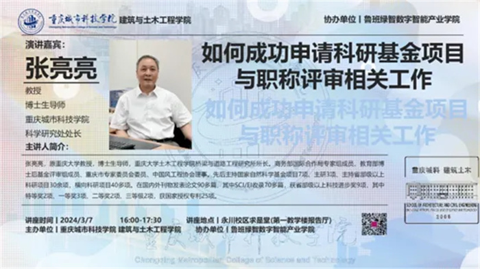 3月7日,建筑与土木工程学院举办了关于科研基金申请与职称评审工作的专题讲座,张亮亮教授为广大教师和研究人员提供了宝贵指导。讲座由建筑与土木学院精心策划,意在帮助教师和研究人员更好地了解科研项目申请流程及职称评审标准,提高他们在学术职业道路上的成功率。参会人员有建筑与土木工程学院院长赵万民、党总支副书记王爽、院长助理王肖巍以及学院的相关老师。