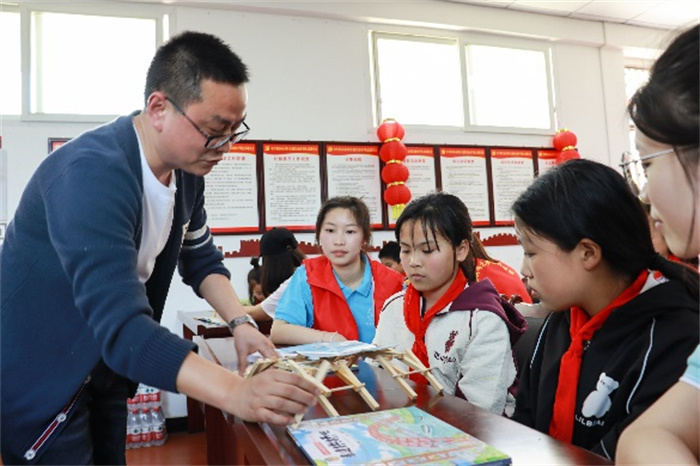 接下来,志愿者们针对乡村教育现状,为当地小朋友们开展了一堂生动的桥梁认知课。课堂上,志愿者们用浅显易懂的语言,向小朋友们讲解了桥梁的结构和作用,带领孩子们动手搭建榫卯倍力桥的模型。此外,志愿者们还鼓励小朋友们发挥想象力,设计自己心中的理想桥梁,为乡村振兴注入创新活力。