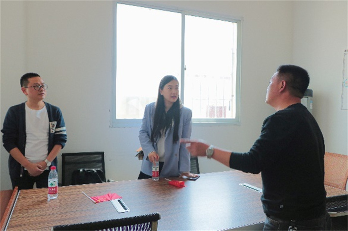 志愿者抵达目的地后,学院领导与金龙镇金鼎村书记黄德会,副书记肖彬,综合治理专干李德富,综合服务专干谷文碧,综合服务专干涂国东,综合服务专干徐显奎进行了深入交流,谈及了当地基本状况和发展需求,志愿者们也通过对话对乡村现状有了更清晰的认知,为后续活动开展奠定基础。