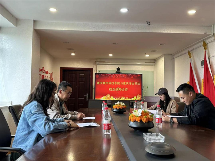 4月25日,艺术与传媒学院书法系系主任常雁来、副主任郑爽与周嘉仁老师前往重庆远伦教育与寻古书法培训有限公司开展访企活动。