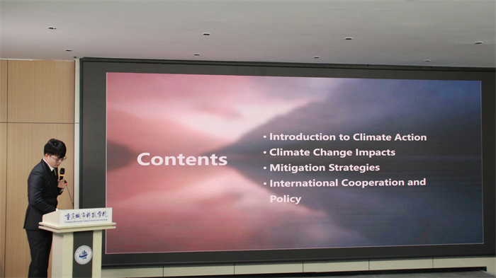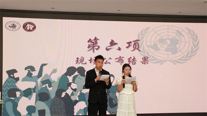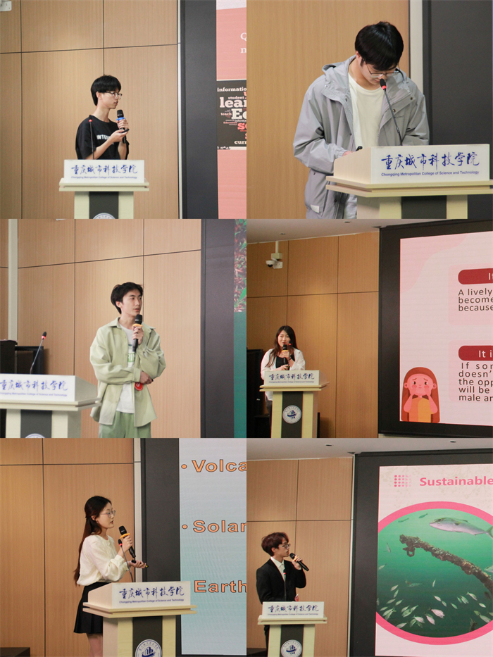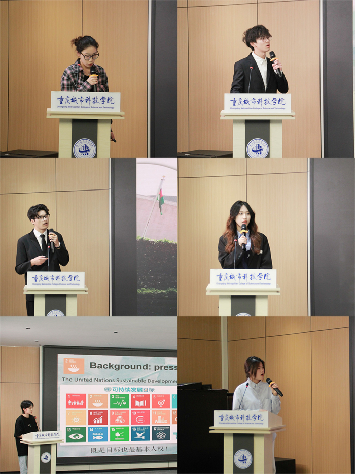 随着主持人话音落下,比赛正式进入第一环节:课题汇报。参赛选手们根据抽签顺序依次上台,他们围绕节约粮食、健康生活方式、冰川融化和校园欺凌等一系列热点话题进行展示汇报。在课题汇报过程中,选手们运用流利的英语,以青年视角对国际化问题清晰地阐明了自己的观点,对问题的成因进行了透彻的分析,获得了评委的一致认可,也引发了现场观众对联合国人口基金可持续发展目标的深入思考。每位同学都是带着满满的热情对待此次比赛,并且在比赛过程中去发现别人的优点和自己的不足,不断地取长补短,为以后的比赛打下坚实的基础。