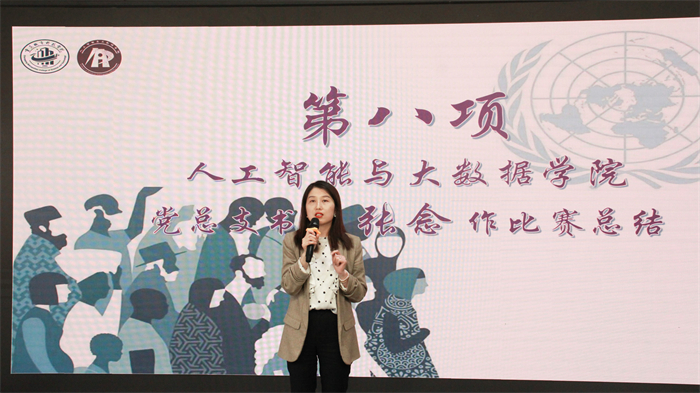 最后,由人工智能与大数据学院党总支书记张念作总结。她指出,同学们在比赛中展现出了极高的热情和才华,通过激情洋溢的演讲、精彩纷呈的才艺表演,充分展示了自己的综合素质和潜能。每一位参赛者都用自己的方式诠释着校园大使的角色,传递着青春的力量。通过本次校园大使选拔大赛,既促进了校园文化的繁荣与发展,为校园文化注入了新的活力和元素,又增强了学院的凝聚力和向心力,进一步推动了学院乃至学校的国际化进程。学院将继续秉承“高端化、全球化、个性化”的教学理念,不断加强对外交流与合作,进一步培养学生的国际视野和跨文化交流能力,提高全球竞争力。