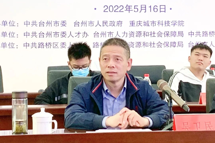 吴卫民首先致辞,他代表路桥区委区政府向学校搭建双选平台表示感谢,对台州市、路桥区的城市概况、产业基础、发展前景、大学毕业生就业政策等信息进行了介绍,并向学校毕业生发出邀请,希望各位学子了解台州、走进路桥,在路桥顺利就业、热情创业,追逐梦想、实现事业抱负和人生价值,共建路桥更加美好的明天。