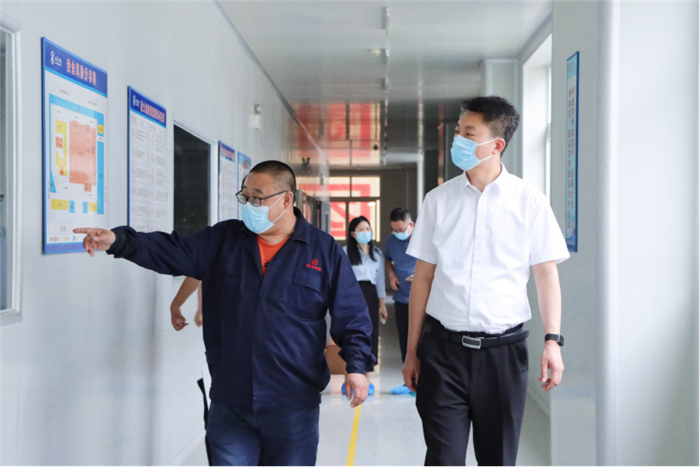 走访中,在重庆航凌电路有限公司总经理赵勇的带领下,郭建礼一行参观了企业文化走廊、企业行政工作间、自动化生产车间、员工公寓等区域,了解其办公工作环境、生活场景。