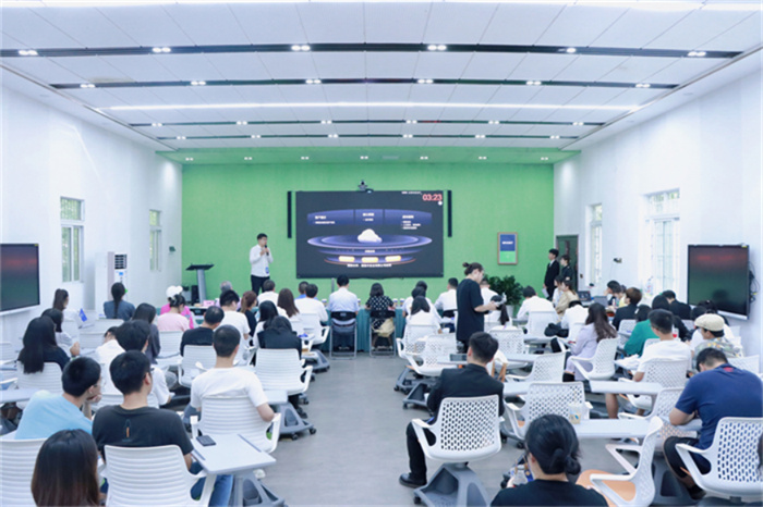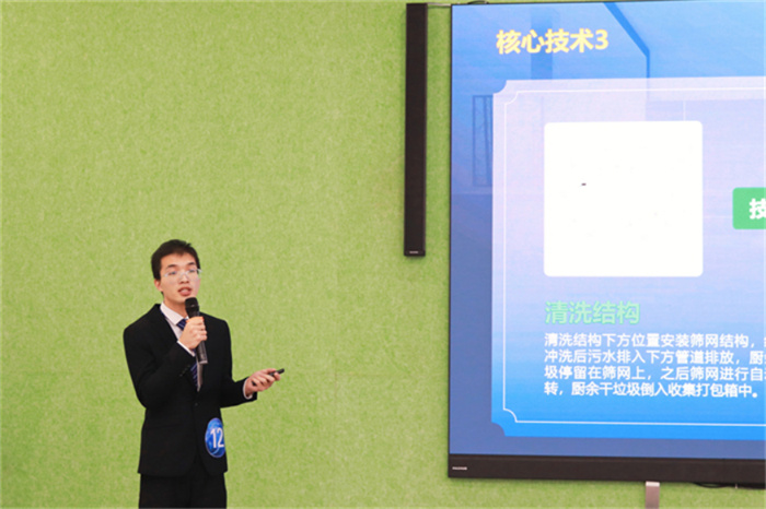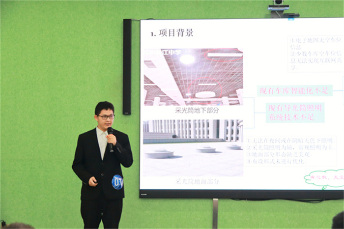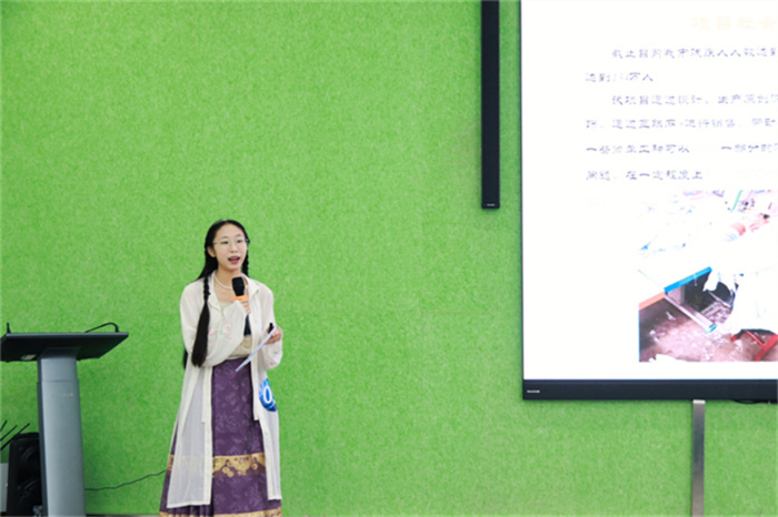 在决赛路演中,12支参赛团队代表通过PPT、视频展示等方式,从项目背景、技术与产品、团队与商业、发展与规划等方面进行项目汇报展示。
