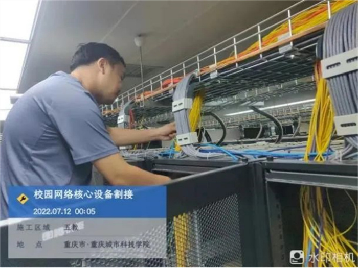信息化浪潮扑面而来,学校以打通信息化梗阻为靶向,以打造智慧校园为目标,大力投入建设智慧校园,让师生工作学习生活更加便利舒适。为进一步推进学校信息化建设,加快智慧校园建设进度,着力推进现代信息技术与教育深度融合,现代教育技术中心提“速度”、抓“进度”、保“工期”,暑假期间对智慧校园建设仍不松懈,扎实推动网络核心升级改造、智慧教室等项目进度。