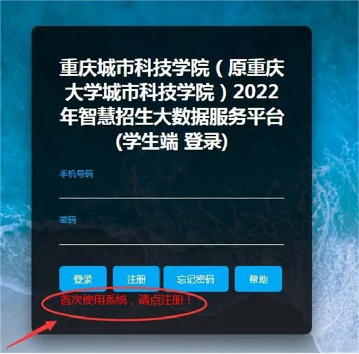 ① 登陆重庆城市科技学院2022年智慧招生大数据服务平台(学生端)