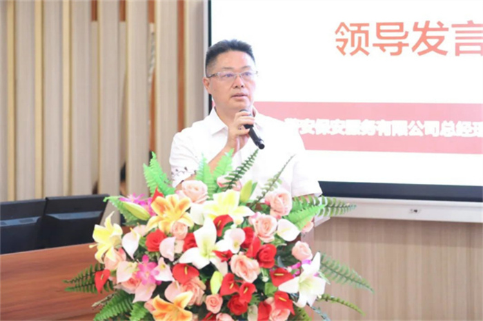 刘学民代表学校对警安保安公司进驻城科表示热烈的欢迎,对本次集训辛勤付出的每位成员表示诚挚的敬意,对在集训中取得优异成绩的安保人员表示衷心的祝贺。他从三个方面对校园安全稳定工作提出希望:一是练就干事的硬脊梁,汇智聚力砥砺前行;二是练就作为的真本事,铸造城科安保铁军;三是练就担当的铁肩膀,守牢安全发展红线。