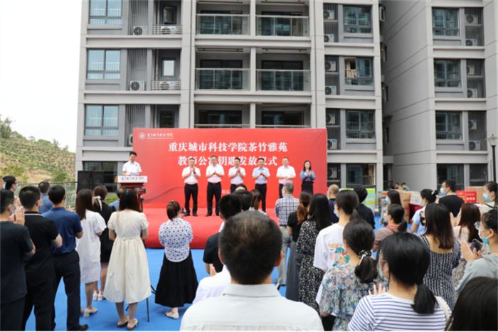 8月29日,重庆城市科技学院隆重举行茶竹雅苑教师公寓钥匙发放仪式。永川区委常委、副区长、高新区党工委书记宋文,永川高新区管委会主任盛逵,学校领导刘学民、王银峰、余林、郭建礼、田妍妮,各二级单位负责人,茶竹雅苑入住教职工参加仪式,仪式由副校长郭建礼主持。