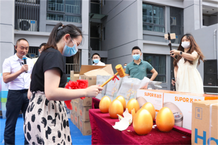 入住教职工现场参与抽奖及砸金蛋活动,领取钥匙办理入住手续。精心的配套和暖心的举措让老师们拥有了家的感觉,在这里找到了稳稳的幸福感和归属感。
